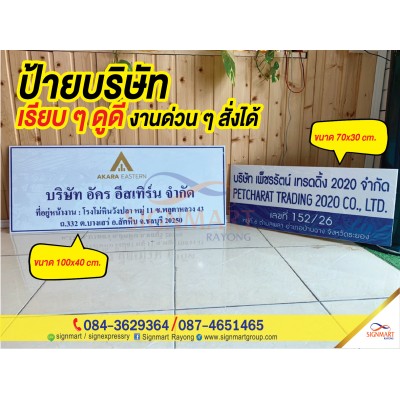 ป้ายบริษัท มีหลากหลายรูปแบบสั่งทำได้ตามแบบที่ต้องการตัวอย่างงาน :   สติ๊กเกอร์ติดแผ่นอคริลิก ขนาด  30x70 cm.